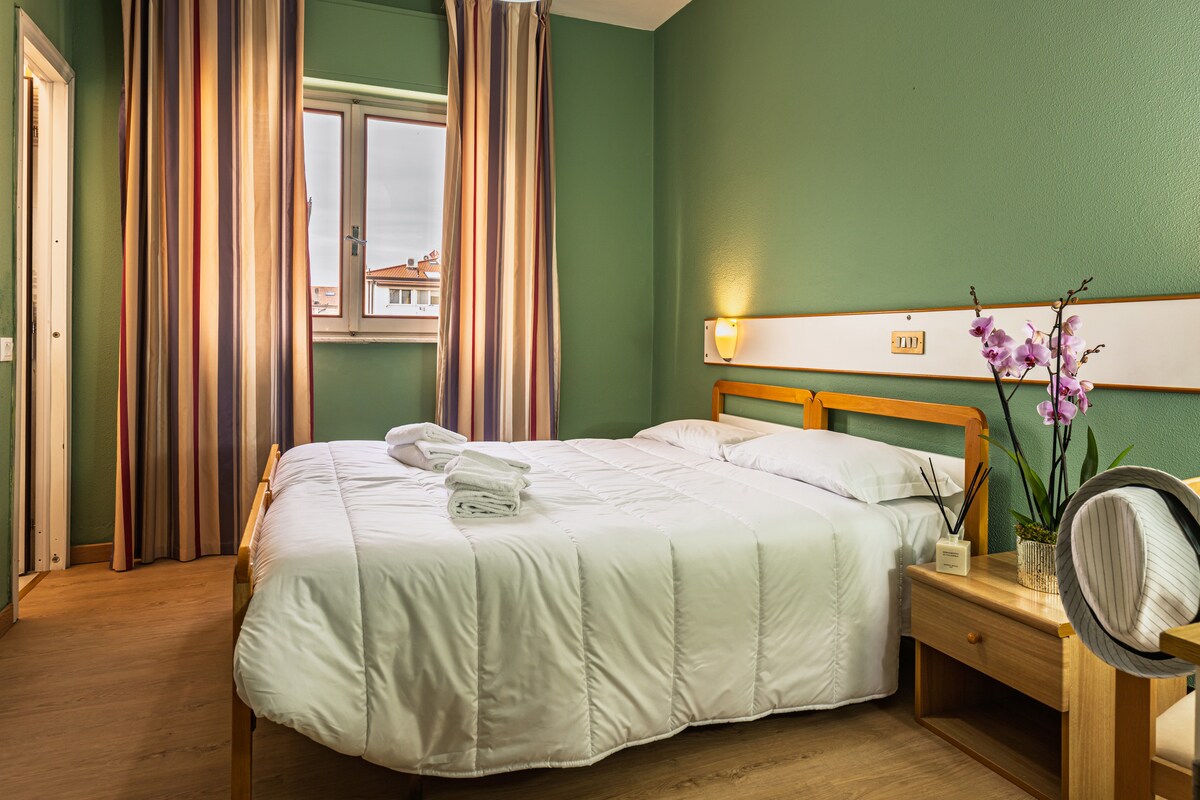 Accogliente e funzionale, la nostra Camera Matrimoniale Economy è la soluzione ideale per coppie o per chi cerca un soggiorno confortevole a pochi passi dal mare. La camera dispone di letto matrimoniale, arredi semplici e curati, e di un bagno privato completo con doccia, set di cortesia e asciugamani inclusi. Gli ambienti sono luminosi e pensati per garantire relax e praticità durante il soggiorno.