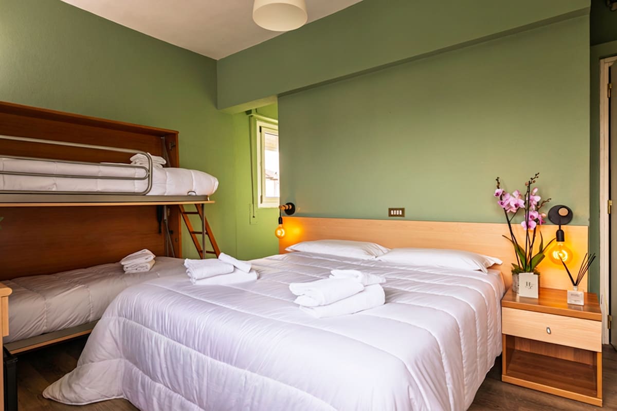 Spaziosa e luminosa, la nostra Camera Tripla con balcone è ideale per famiglie o piccoli gruppi di amici che desiderano comfort e praticità a pochi passi dal mare. La camera dispone di tre letti singoli, di ambienti curati e funzionali e di un balcone privato, perfetto per rilassarsi all’aria aperta dopo una giornata di mare. Il bagno privato è completo di doccia, asciugamani e set di cortesia. Gli spazi sono pensati per garantire comodità e tranquillità durante tutto il soggiorno.