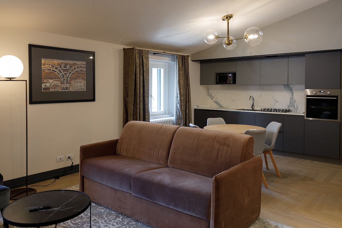 Appartamento di 73 metri quadri, 1 camera da letto matrimoniale, 2 bagni privati e divano letto nel soggiorno. Ispirato al fiore del gelsomino, l’Appartamento Jasmine. Il nome della pianta deriva da persiano Yasmin, che significa “dono di Dio”. I suoi delicati fiori bianchi simboleggiano la purezza, mentre il suo profumo potente è connesso con la sensualità.
