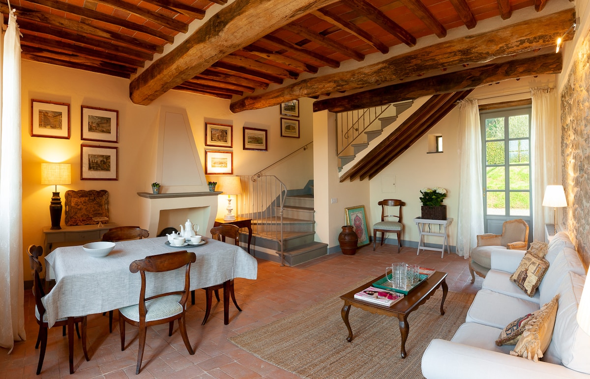 Questo vecchio casolare del1770 è stato ristrutturato interamente con materiali biologici e nel pieno rispetto dello stile classico Toscano. Il bosco che vicino alla casa, il profumo delle erbe aromatiche e del frutteto creano insieme al tipico arredamento di castagno, ai pavimentini in Cotto Toscano ed ai muri in pietra una combinazione tra colori odori e sensazione di pace che rende il soggiorno unico per senso di pace e relax...un vero e proprio toccasana sensoriale