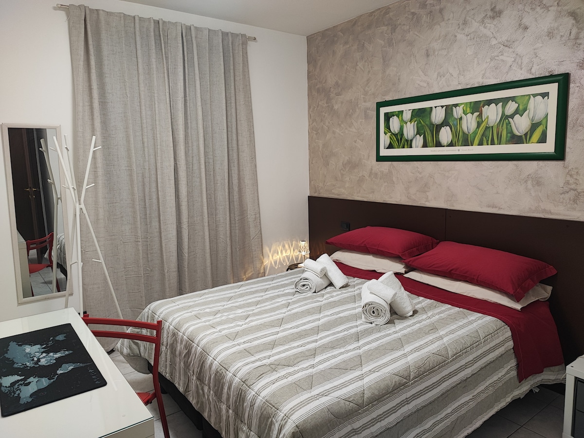 Casa Cattarinetti is a beautiful, completely renovated 85-square-metre flat located 300 metres from the Verona Fair and very close to the historic centre. You will find two bright bedrooms, a fully equipped bathroom and kitchen with TV area. To offer maximum comfort to my guests, all rooms are equipped with soundproofed and insulating triple-glazed windows, electric shutters, memory mattresses and pillows, air conditioning and heating.