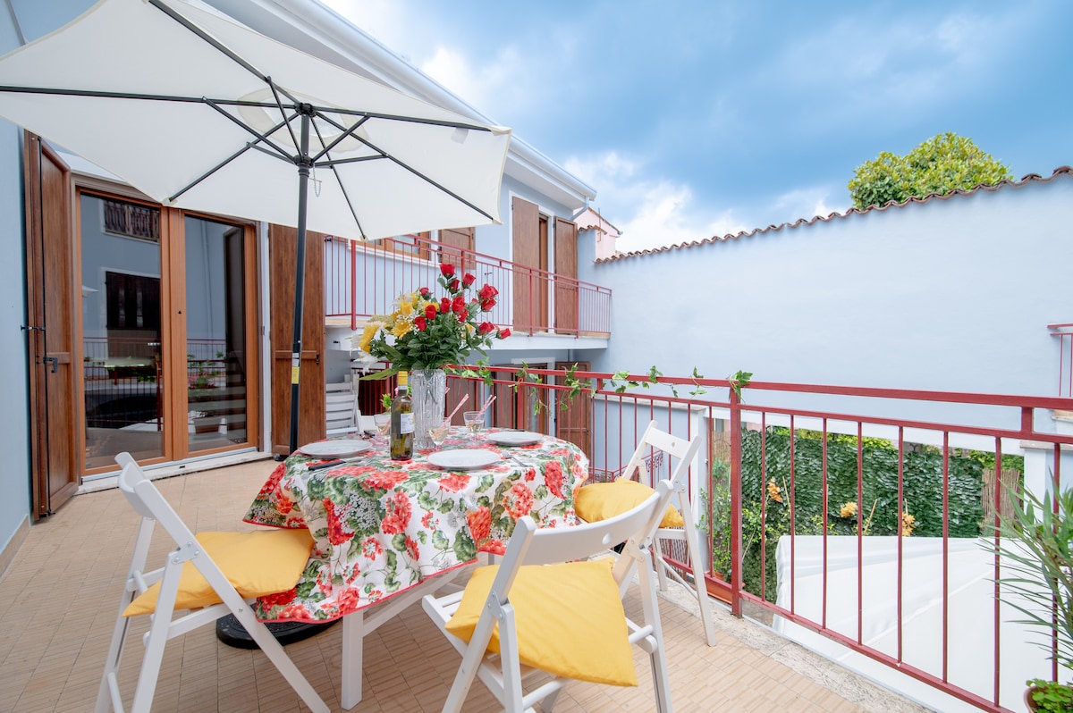 The apartment is located on the first floor and overlooks the courtyard with the old threshing floor and is composed of a double bedroom, a living room with kitchen, with a sofa, and a bathroom with shower. The apartment is equipped with every comfort: the equipped kitchen, the fridge, the necessary linen for the living room, the television, the air conditioning and the Wi-Fi connection. Ideal apartment for a couple.