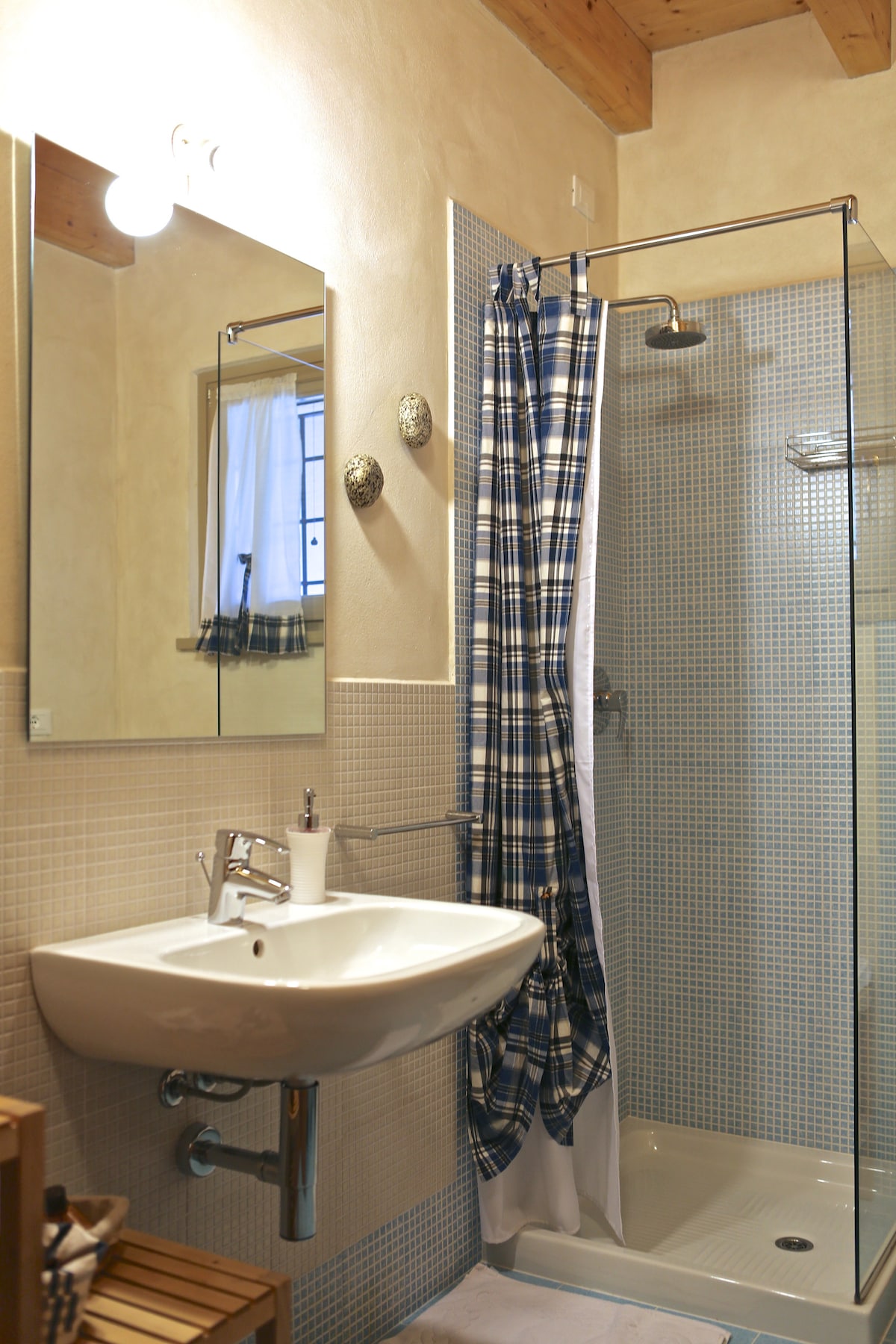 The apartment is located on the first floor and overlooks the courtyard with the old threshing floor and is composed of a double bedroom, a living room with kitchen, with a sofa, and a bathroom with shower. The apartment is equipped with every comfort: the equipped kitchen, the fridge, the necessary linen for the living room, the television, the air conditioning and the Wi-Fi connection. Ideal apartment for a couple.