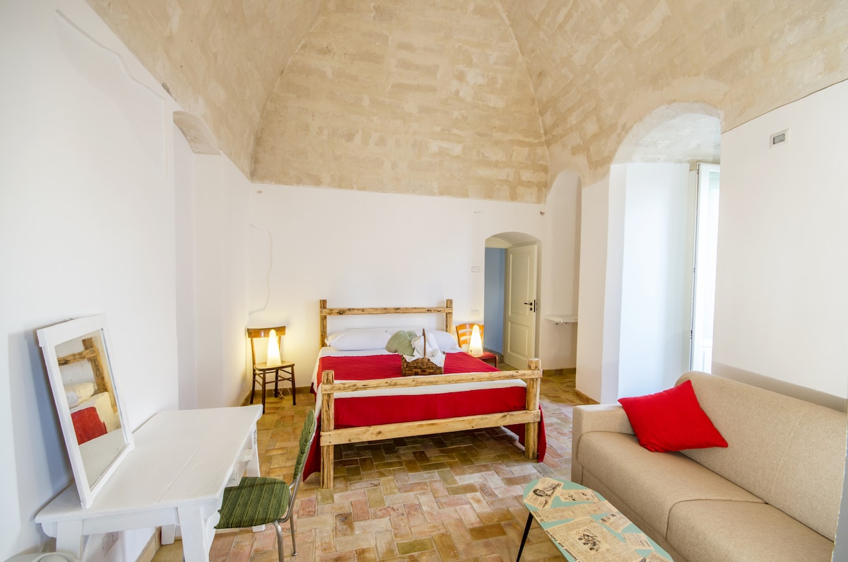 No. 11 is located in the heart of the old town of Matera, the Sassi. The breathtaking view has been featured in several films, such as James Bond, the Passion of Christ and Ben-Hur. This historical house has stunning vaulted sandstone ceilings and rooms decorated in Scandic-Italian style. A spacious bedroom, en-suite bathroom and a small lounge area with private entrance from the street. A fantastic location but not for the faint hearted, lots of steps, but it's worth it. Bring your sneakers !