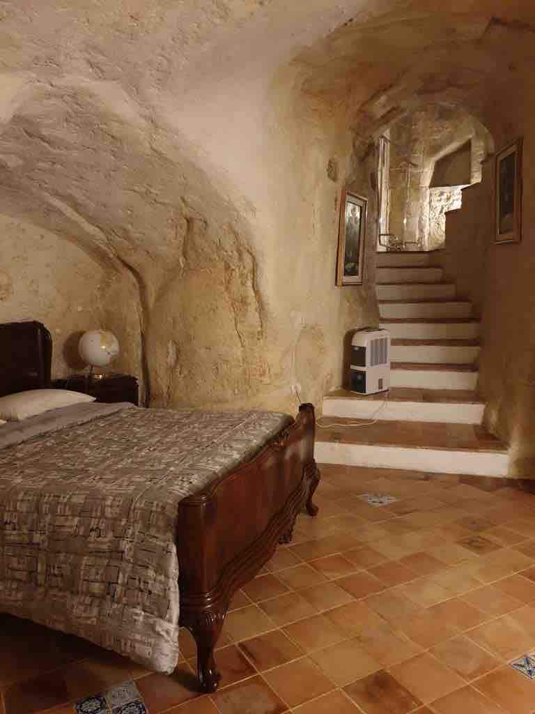 La piccola casa in grotta ha un ingresso indipendente. è una piccola camera ipogea ricavata totalmente all’interno della massa tufacea . Le grotte hanno un loro particolare microclima che viene regolato da impianto di riscaldamento in inverno e deumidificazione quando necessario. Nello spazio esterno, arredato con tavolino e sedie, è possibile incontrare e fare amicizia con la mia gattina e con il mio cane, un dolcissimo Border Collie . Soggiornare in una grotta è un esperienza.
