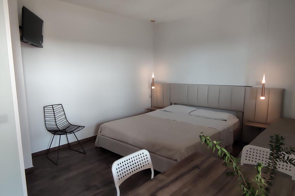 Imagine crossing the threshold of your oasis of tranquility in the beating heart of Matera's historic center. Welcome to the Comfort double room, a stylish retreat where mysterious hues and thoughtful details make every moment a unique experience, a break from the daily hustle and bustle. The authentic beauty of Matera, with its millenary alleys, is just outside your door, the "Calle" room, where every detail is designed to envelop you in an unforgettable experience.