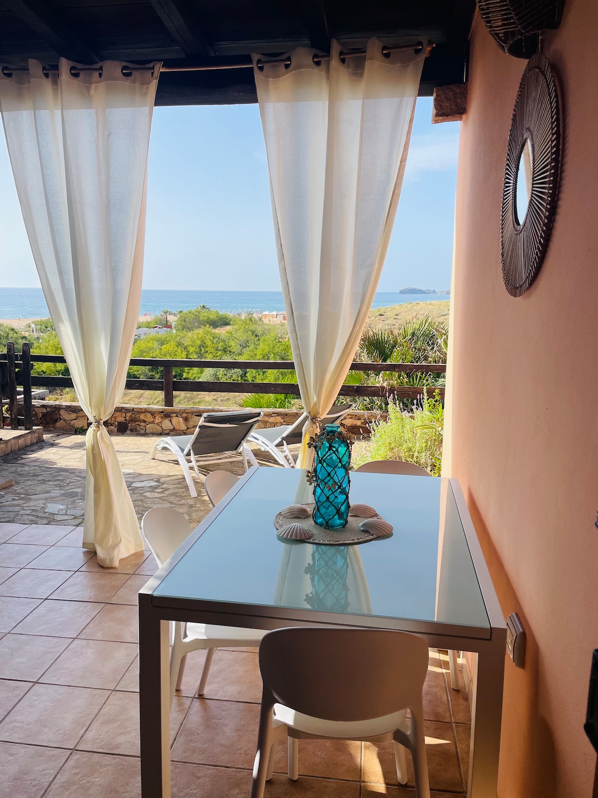Trascorri momenti indimenticabili in questa casa che gode di una vista mozzafiato sulle altissime dune, il mare incontaminato, la spiaggia dorata e dalla quale potrai ammirare suggestivi tramonti. Si accede mediante scala condominiale che conduce alla terrazza coperta da tettoia in legno, dotata di doccia e barbecue . Si compone di soggiorno con angolo cottura, tavolo, divano letto (trasformabile in un letto a due piazze) e terrazza panoramica; camera da letto matrimoniale; bagno con doccia.