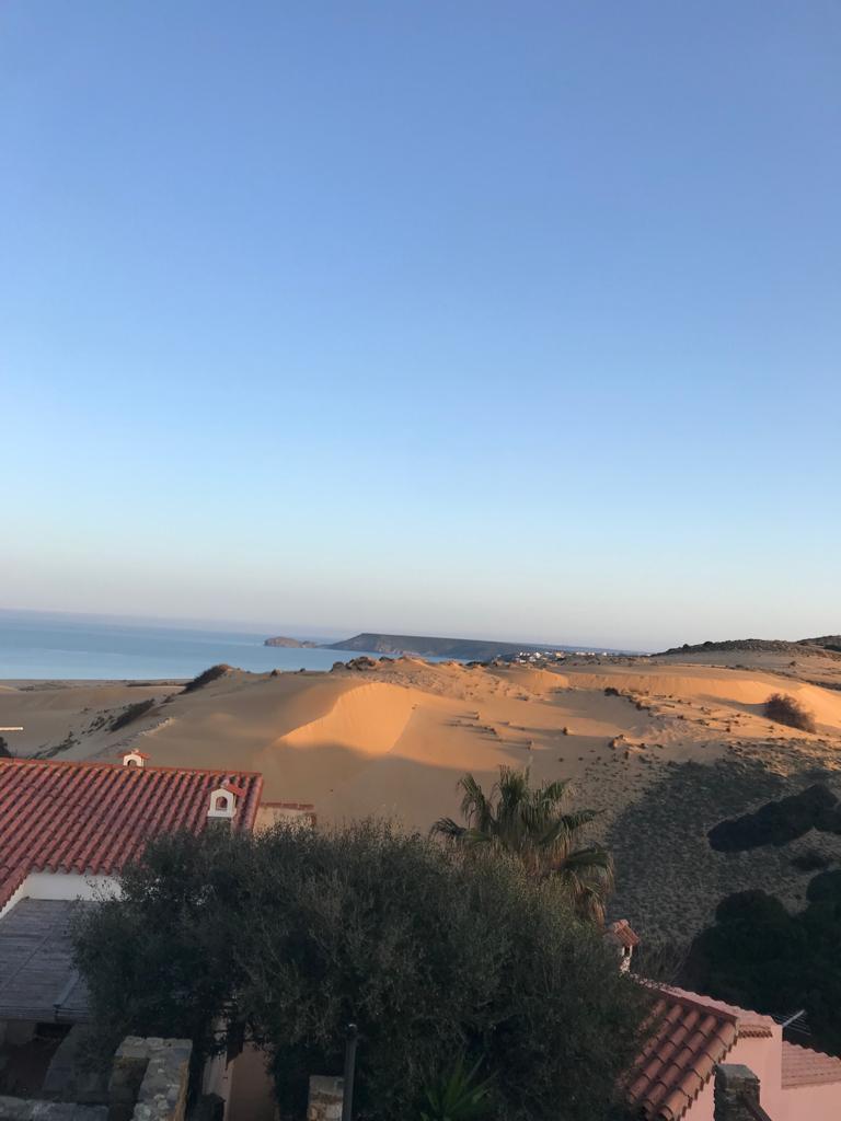 Trilocale con vista mare (4/5 postti letto), di fronte alle dune di sabbia dal caldo colore ramato.Ingresso dalla veranda vista dune e mare arredata con tavolo e sedie da esterni per una cenetta al tramonto, soggiorno con angolo cottura, cucina completa, frigo e freezer, tavolo con sedie, TV-Sat.Bagno con cabina-doccia, WC, bidè e lavandino.Camera da letto spaziosa con letto matrimoniale e cameretta con letto castello.Parcheggio privato.A piedi 15 min per arrivare alla spiaggia grande e le dune.