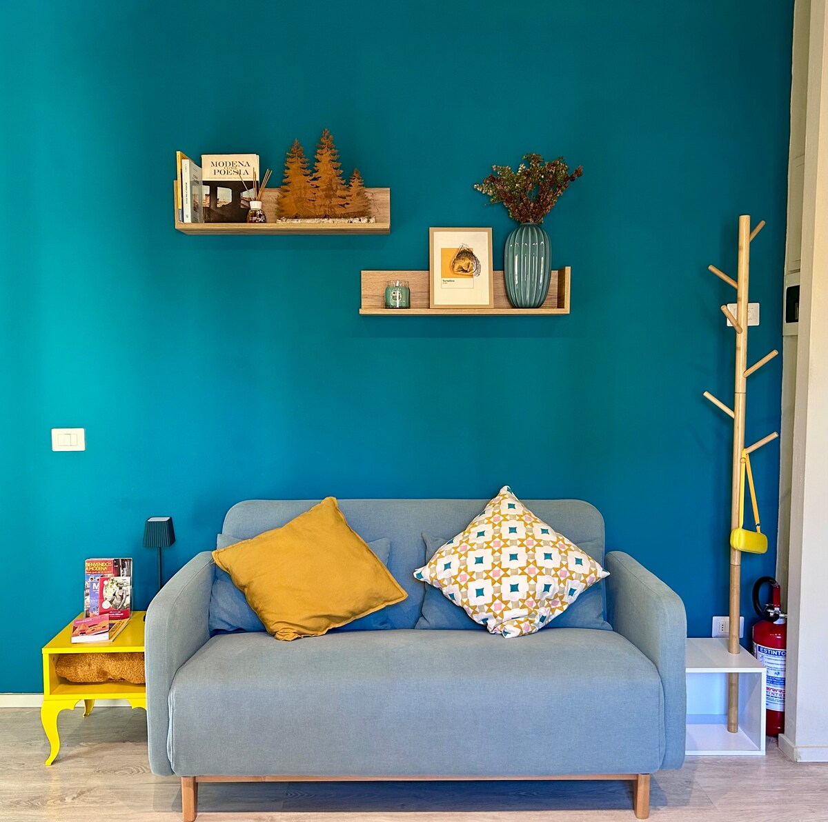 Centro Storico, Pass ZTL, Parcheggio gratuito. Appartamento a Modena nel cuore del centro storico a due passi da tutte le attrazioni turistiche come Museo Ferrari e migliori ristoranti come Osteria Francescana di chef Bottura. 38 mq. con particolare design Si trova al 4° piano con ascensore fino al 3° in splendido palazzo del 1700. L'appartamento è composto da 1 camera con letto matrimoniale, Smart TV, 1 bagno in camera con grande doccia, 1 soggiorno con angolo cottura e divano letto, Smart TV