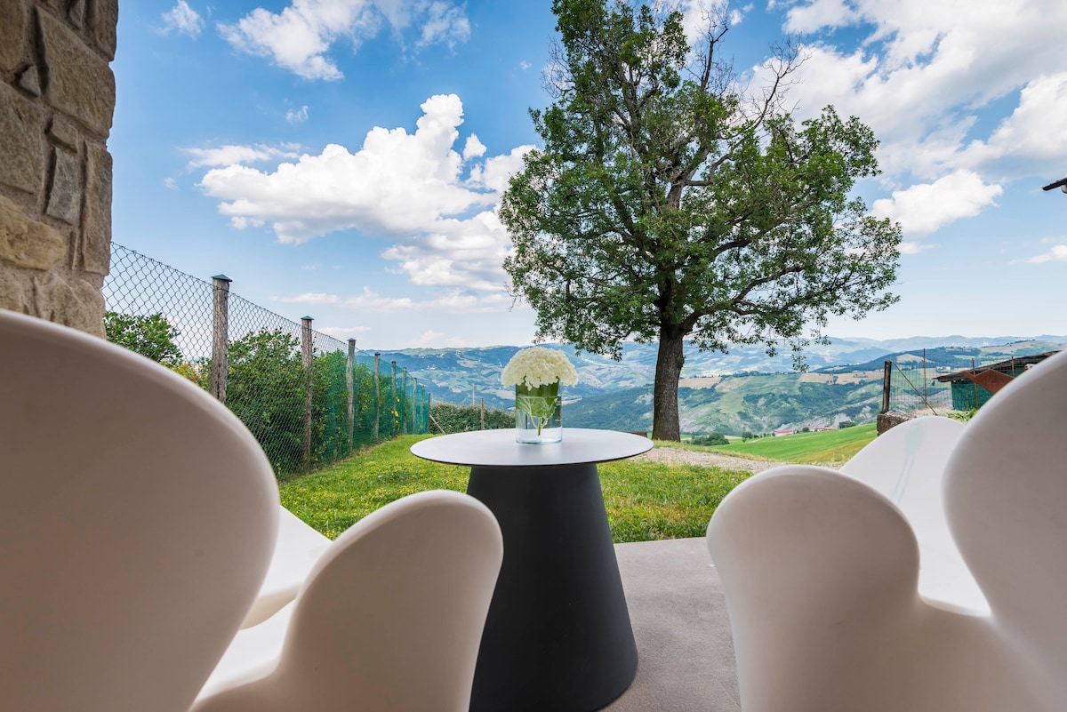 Perched on top of a hill in the countryside between Bologna and Modena, this lodge is a great location for exploring the area. It's a peaceful place, with panoramic views and the convenience of having excellent local restaurants (& wine makers) nearby. The house, decorated with mid century design & furniture and fully air conditioned, has 4 sleeping rooms and 5 bathrooms. Please note: you need a car to reach us and to enjoy the area. Thank you for reading this!