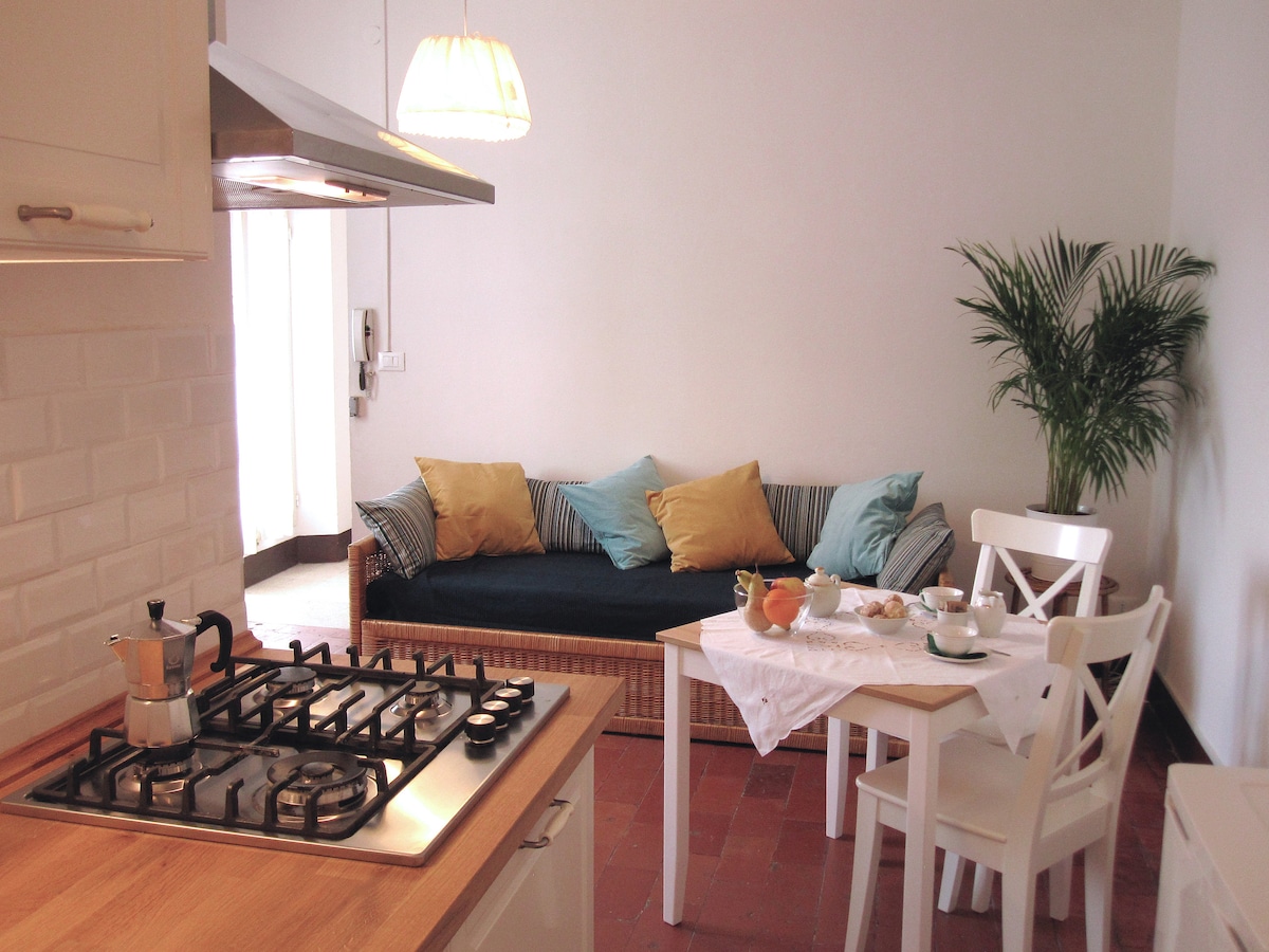 The apartment "Il Mughetto" ("The Lily of the Valley") is at the second floor,it has just been renovated and is bursting with character. The lovely view of the tree-lined courtyard, garden and surrounding countryside, as well as its furnishings and intimate feel make it a bright, friendly apartment and the perfect place to retreat to. With its romantic atmosphere, the apartment is perfect for a couple.