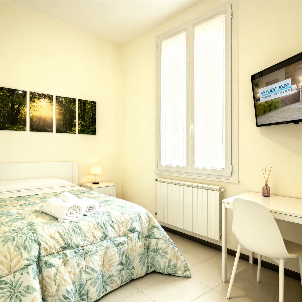 Guest House Gobetti is centrally located, 500 m from the Central Station, Mirabello Stadium, Piazza San Pietro and the historic center, and 1 km from Piazza della Vittoria and Santa Maria Nuova Hospital. Well-served area. Cozy stay with equipped kitchen and welcome kit (coffee, pantry and pastries). Rooms with Wi-Fi, TV, desk and kit. Bathroom with shower and toiletries. Campovolo 3.5 km; AV Mediopadana 7 km; Parma 30 km, Bologna 68 km. Local partner services.