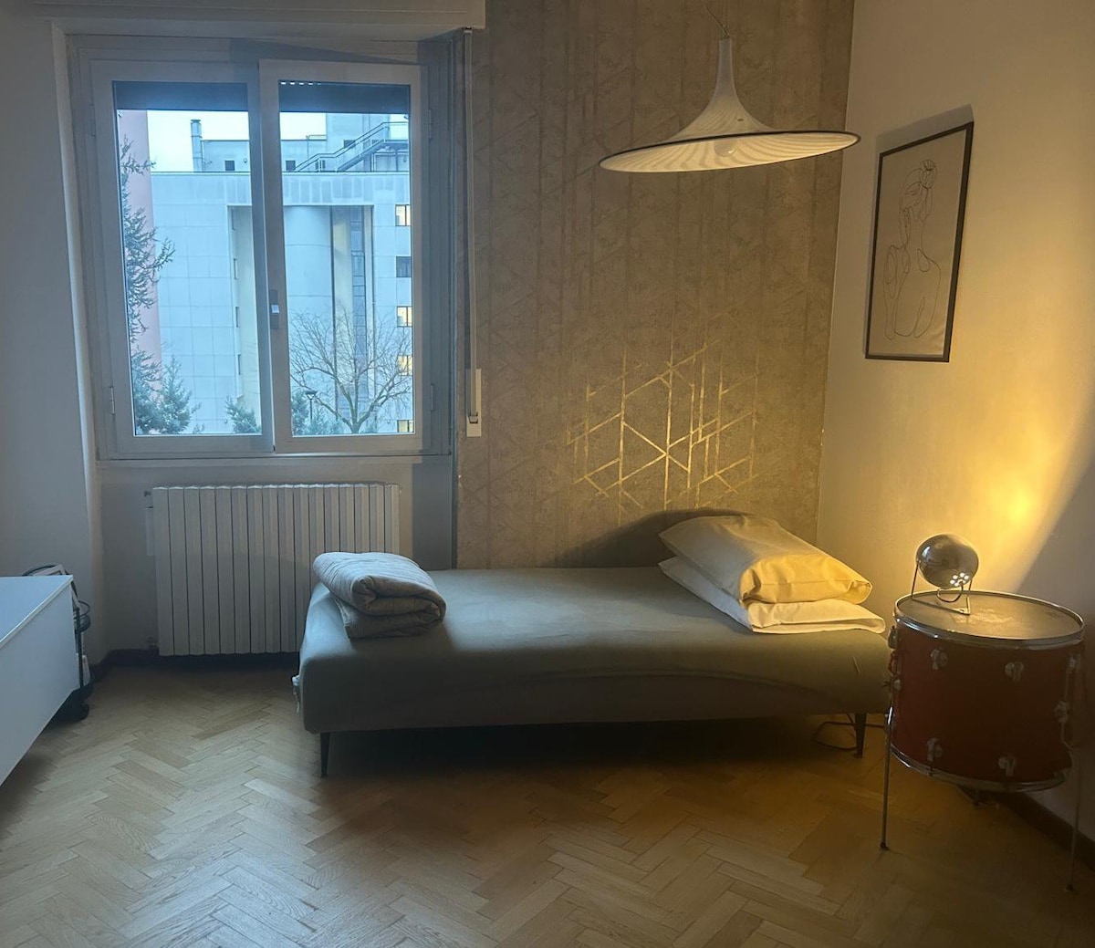 Rilassati in questo spazio tranquillo in posizione centrale, con vista sul parco della villa Borsani. Grazioso monolocale in centro a 350m, 5 minuti a piedi, dalla stazione Trenord per Milano Olimpiadi e Malpensa. Nelle vicinanze i principali servizi come farmacia, supermercati, panificio, negozi alimentari, banca, pizzerie e ristoranti. Possibilità di parcheggio gratuito adiacente al condominio. Disponibile cucina e bagno attrezzati, divano letto matrimoniale, ferro da stiro, phon.