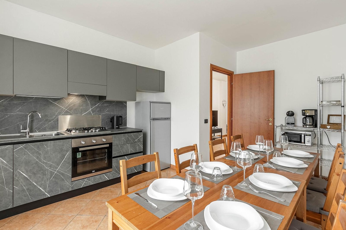 It's a modern apartment located at the first floor of a Villa Libertina, built in the early 1900s. The cozy aptartment, fitted for families, offers a wide open kitchen, two bedrooms, two tiny balconies and a bathroom with a big shower. Every room has its own air-conditioner. Right after the exit door there is a flowery private garden. The apt is very close to the lakeside, about 5 minutes by walking.