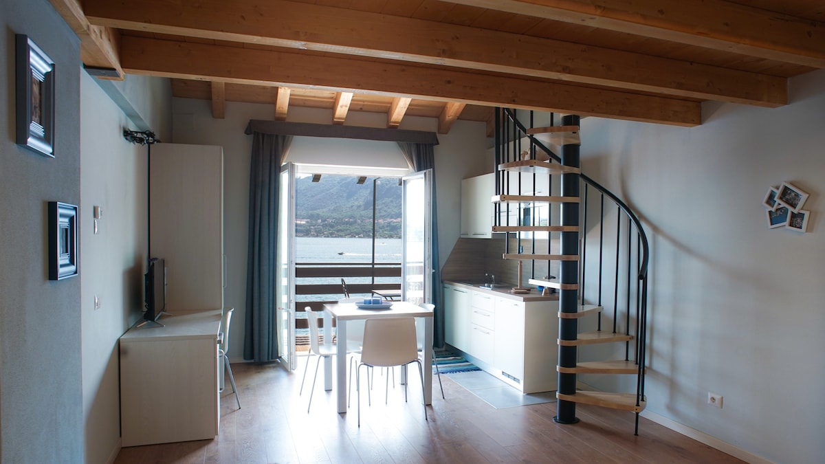 Imagine waking up in your cozy outbuilding in Omegna, surrounded by greenery and a few steps from the crystal clear water of the lake. Let yourself go to absolute relaxation, explore the beauty of Lake Orta, its small bays and hidden beaches, its ancient villages and its scenic trails. When evening falls and the sky turns pink enjoy the view from your private terrace overlooking the shores of the lake.