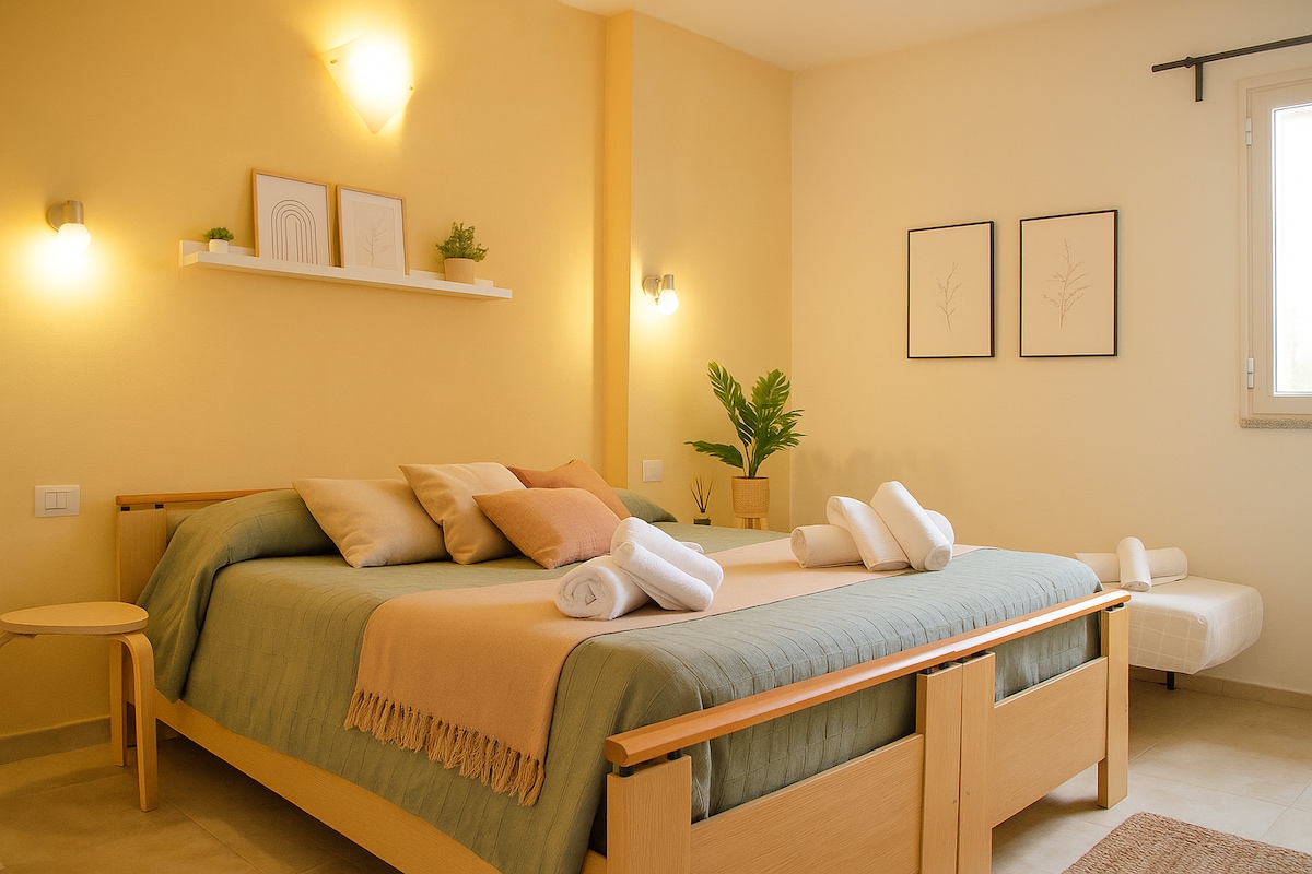 In the quiet heart of Brunella, a small village surrounded by green hills and scented with Mediterranean scrub is the apartment Elicriso. A few minutes drive from the crystal clear waters of Budoni, this corner of Sardinia offers everything that a traveler can desire: authentic landscapes, regenerating quietness and unspoiled nature. The port and airport of Olbia are easily reached in about 20 minutes, making the stay practical and stress-free from the first day.