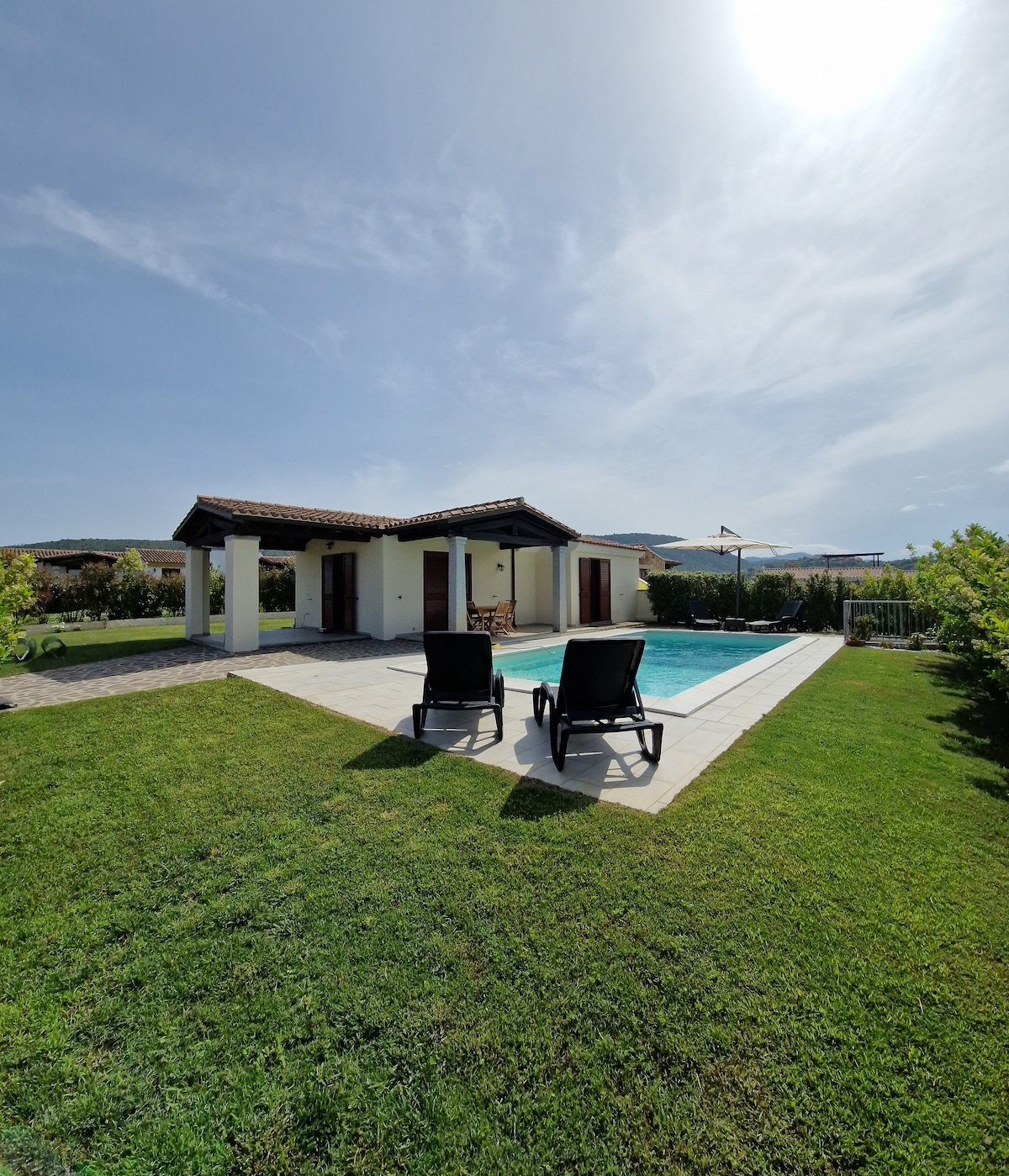 Villa esclusiva di recente costruzione con piscina privata a 500 mt dal mare, 3 camere da letto di cui 2 matrimoniali e 1 con letto a castello, cucina, soggiorno, veranda, bagno interno ed esterno e grande giardino. Dista 38 km dall'aeroporto Olbia-Costa Smeralda, 40 km dal porto di Olbia e circa 3 km dal centro di Budoni