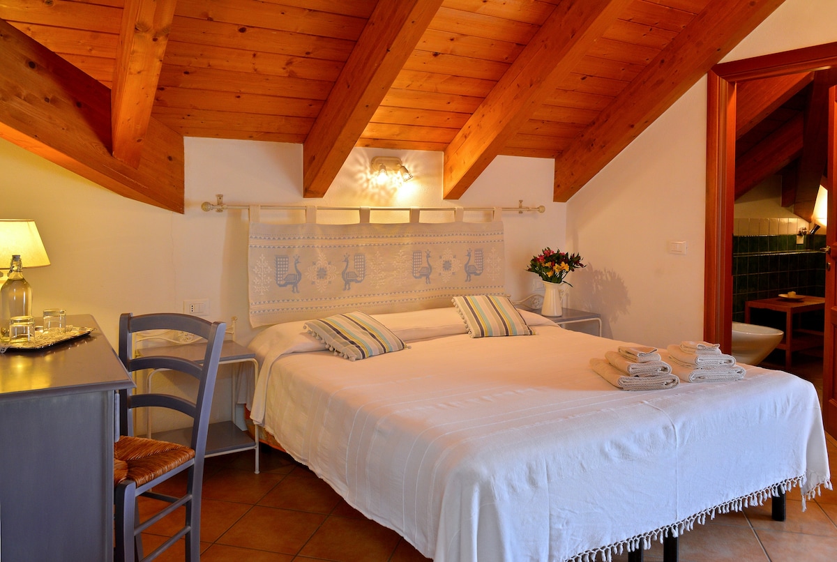 La suite Sa Priorissa è un’ampia camera di 22 mq, arredata in stile sardo, con i tipici arazzi e tappeti tessuti al telaio, e opere in ferro battuto che richiamano le tradizioni artigianali della nostra isola. La camera è composta dal disimpegno di ingresso, camera matrimoniale/doppia, sala da bagno. Presenti WiFi alta velocità, TV led a schermo piatto, cassaforte, riscaldamento, clima. Il bagno con doccia è dotato di asciugacapelli, scaldasalviette, prodotti da bagno.