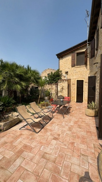 la casa è ubicata al centro del paese ed in prossimità del comune, farmacia, museo, bar, fiorista, panificio e tutti i servizi necessari alla famiglia. E' utilizzabile il piano terra della casa mentre il primo piano è chiuso e non utilizzato. La casa è interna ad un cortile chiuso con piccolo giardino. E' luminosa, molto spaziosa e silenziosa per un relax perfetto. Il codice attribuito dall'Assessorato del Turismo è IUN: P7446