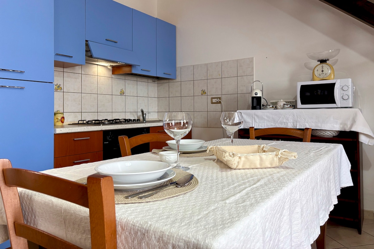 Overlooking Piazza Mariano, Albachiara - Room 1 is a cozy double room furnished in traditional Sardinian style. It features a private bathroom, air conditioning, and a kettle. Guests can make use of a shared kitchen. Just a short walk from the historic center, it’s perfect for exploring Oristano and the nearby beautiful beaches, such as Is Arutas and San Giovanni di Sinis. Ideal for relaxation and authenticity. ✨