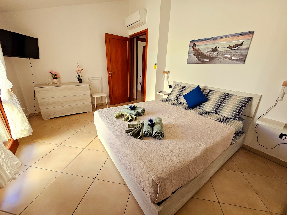Welcome to CasaSabrina! A charming retreat just a 10-min walk from Oristano’s historic center, with its lively squares and monuments. In 15 min by car, enjoy the sunset at Torregrande’s marina, or in 25 min, unwind on the breathtaking beaches of the Sinis Peninsula, like Is Aruttas and San Giovanni. Nestled on the 1st floor (no elevator) of a small, quiet building, it features 2 cozy double bedrooms, a fully equipped kitchen, free Wi-Fi, and all you need for a relaxing stay. IT095038C2000Q7970