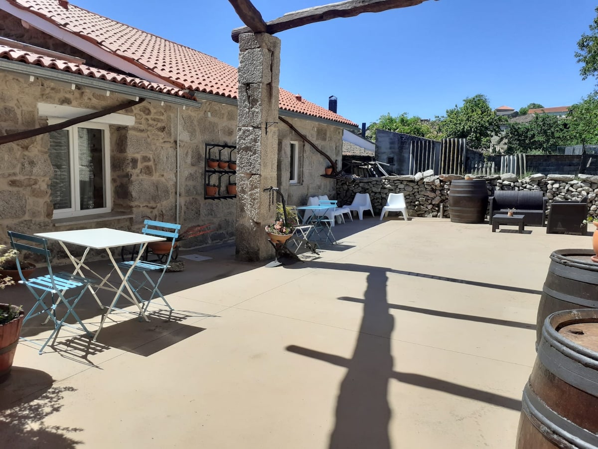En esta casa vivían los "caseiros" - la familia que cuidaba la finca donde actualmente se cultiva nuestro vino ecológico. Restaurada en 2013, se conservó el espacio de la vieja cocina con su "lareira", el horno y el fregadero de piedra, ahora un espacio fresco para leer, jugar o dormir la siesta. Las dos plantas abiertas miran al valle del río Miño, que nos separa de Portugal. Arriba, para dormir o leer; abajo, donde antiguamente estaban los animales, para cocinar o salir al pequeño jardín.