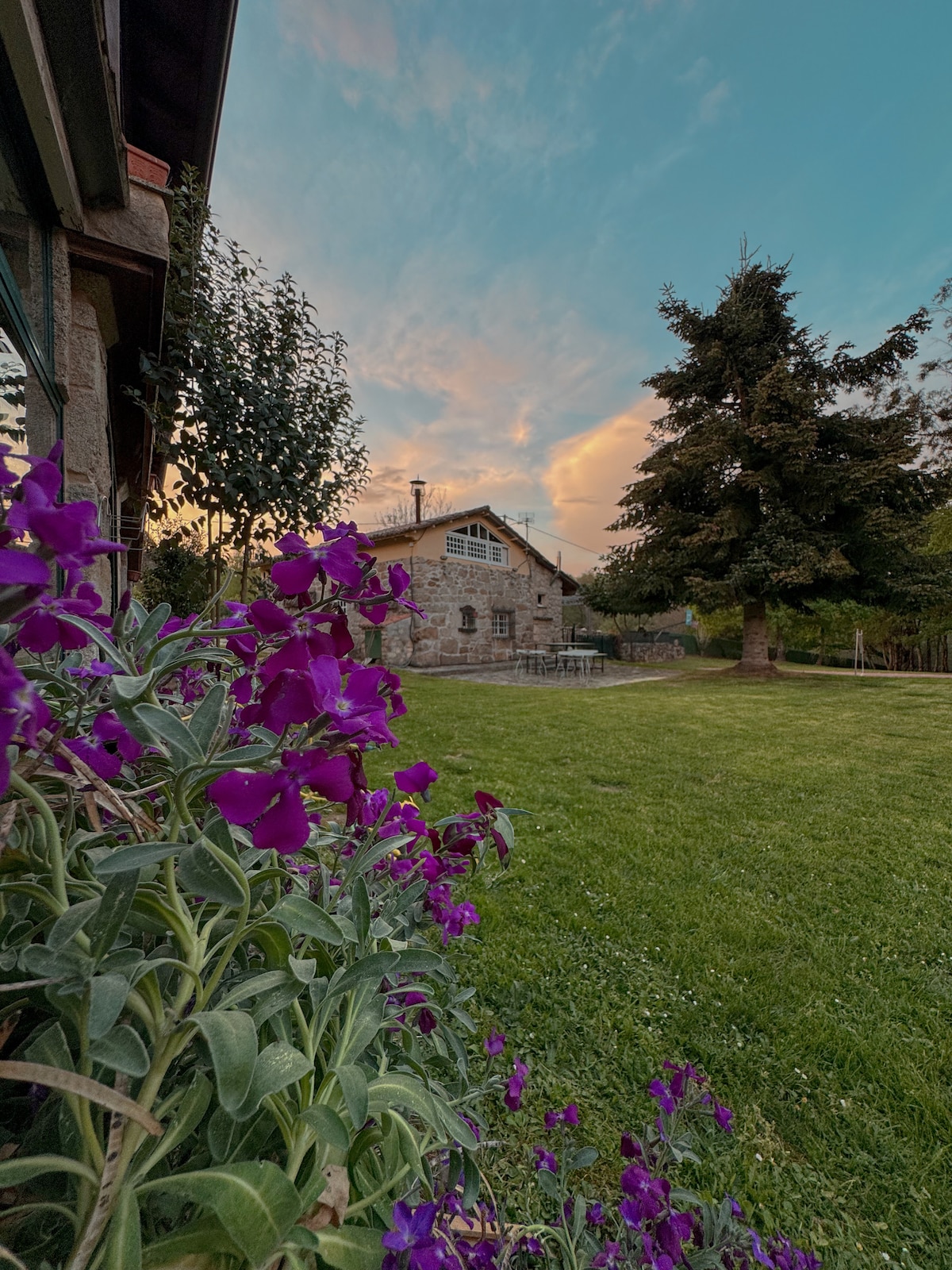 Preciosa casa de piedra, muy tranquila y cómoda en entorno rural pero a tan solo 10 minutos del centro de Orense. Tiene acceso directo desde la carretera sin escaleras. Consta de dos habitaciones dobles y dos baños completos. El salón es muy espacioso y dispone de sofá-cama y una cama plegable. La cocina está totalmente equipada. Tiene un patio delantero empedrado y una terraza trasera con vistas a la Ribeira Sacra donde puedes salir a comer, cenar y relajarte.