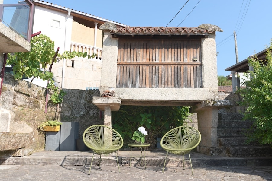 Casa de piedra del año 1880 recién restaurada, creando un diseño único y orgánico entre sus paredes de piedra y su tejado con grandes vigas de madera. Resalta por sus fantásticas vistas al embalse de Castrelo de Miño. Se sitúa en el corazón del Ribeiro, a 2Km de Ribadavia. Las Termas de Prexigueiro se encuentran a 10 minutos, también hay diversas rutas de senderismo. Bodegas cercanas que ofrecen visitas guiadas. Ourense está a 28Km, el aeropuerto de Vigo a 67km y el de Santiago a 120km.