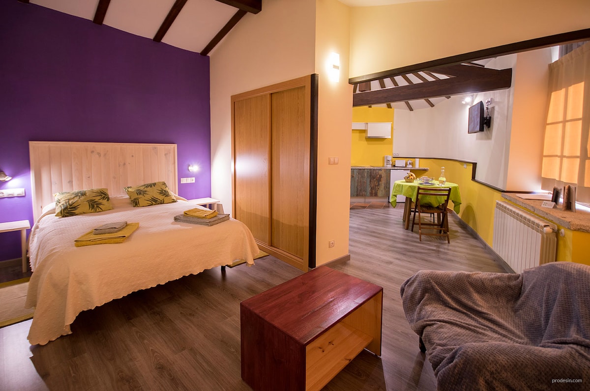 El Apartamento Estudio es una excelente opción para singles o parejas que desean una estancia prolongada. Con un amplio ventanal que ofrece vistas impresionantes a las montañas y viñedos, cuenta con una cocina-comedor equipada con vitrocerámica, nevera y horno. Además, encontrarás todo el menaje de cocina necesario y una lavadora para mayor comodidad. El Apartamento Estudio te brinda un espacio acogedor y agradable para disfrutar de una estancia confortable.