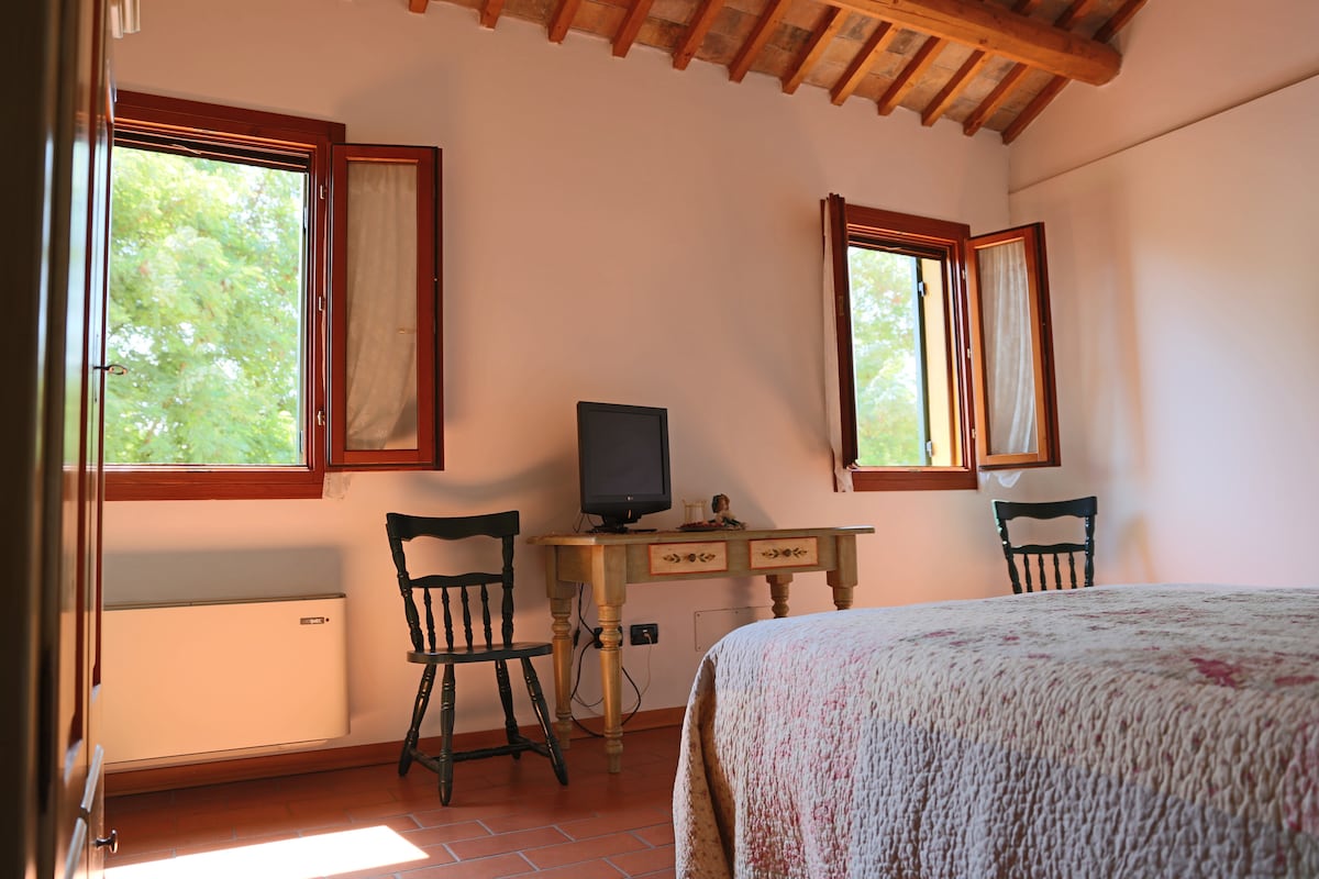 La Camera "Murano" è arredata con mobili e materassi nuovi, coperte su misura, offrendo un perfetto riparo dopo una giornata di visite alle bellezze del territorio o di ritorno da una faticosa giornata di lavoro.