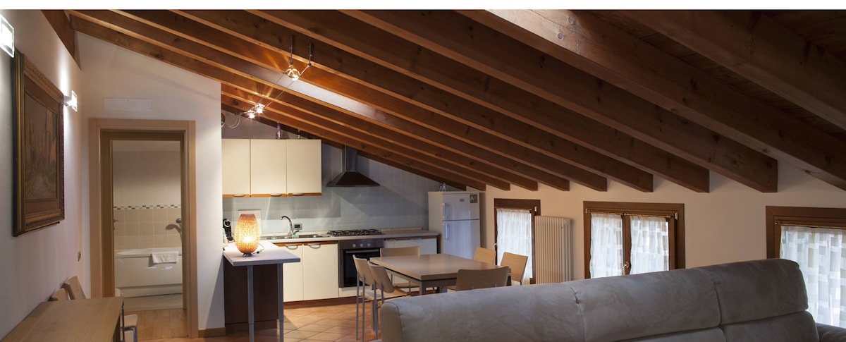 Three bedroom apartment in the countryside with a large garden. One double room with private bathroom and another double and single room with shared bathroom. Quiet, private, ideal for families or groups and pet friendly. Located on the first floor, it has its own entrance, private on site parking and WIFI. Hosts live on site. Central in between historical cities Venice, Padova and Treviso. Easy to reach from the highway. 1.5 hour from the beautiful Dolomite mountains and 1 hour from the beach.