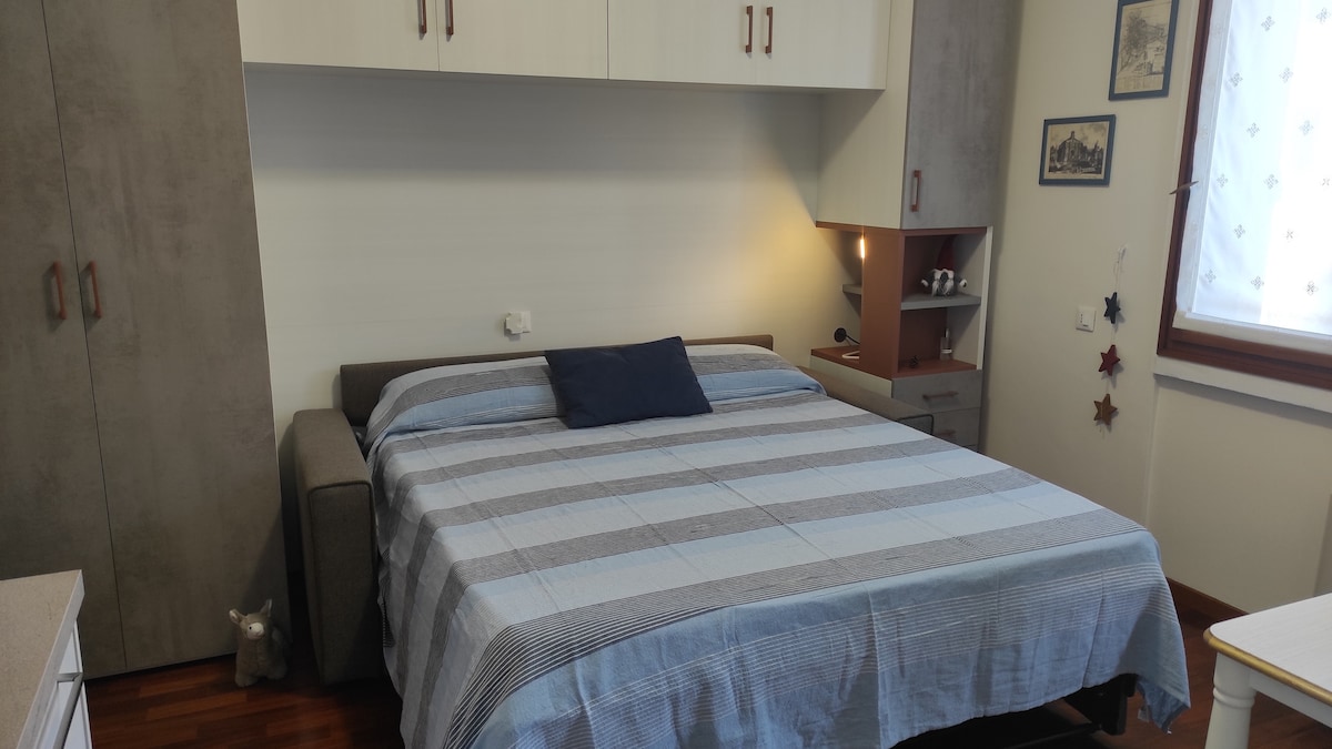 Mini appartamento completo di tutto, Self Check-In, Wi-Fi, aria condizionata, riscaldamento a pavimento. Porzione centrale di casa trifamiliare con giardino, no condominio, zona tranquilla ma servita dai principali servizi ( supermercato a 100 metri ) Mini apartment complete with everything, Self Check-In, Wi-Fi, air conditioning, underfloor heating. Central portion of a three-family house whit garden, no condominium, quiet area but served by the main services (supermarket 100 meters away)