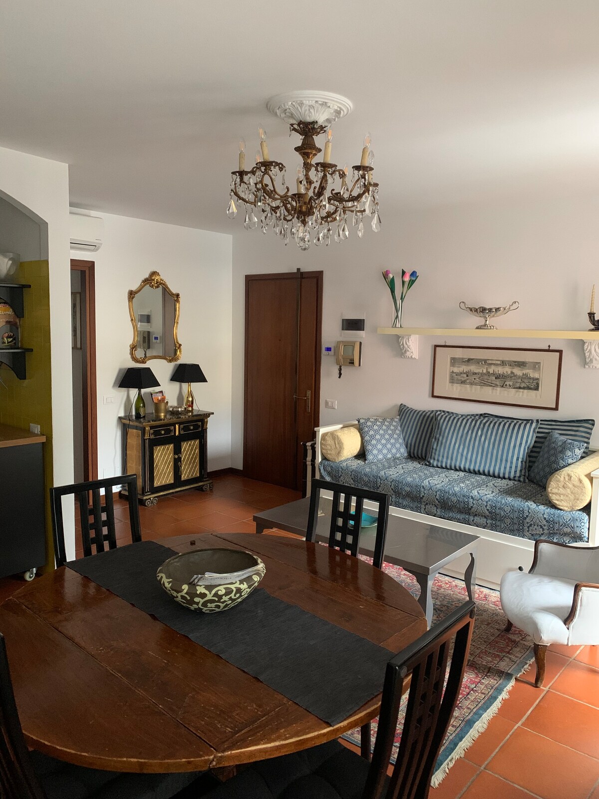 Magnificent accommodation with high-quality finishes located in the historic Piazza delle Erbe. The flat consists of: - Open-plan living room with dining table and sofas - Modern, fully equipped kitchen - Relaxation area with sofa and TV - Mezzanine with study desk - 2 bathrooms, one with glass shower cubicle and one with bathtub - 2 double bedrooms with queen-size beds - 1 double bedroom with king-size bed. The flat is only 30 minutes by train from Venice.