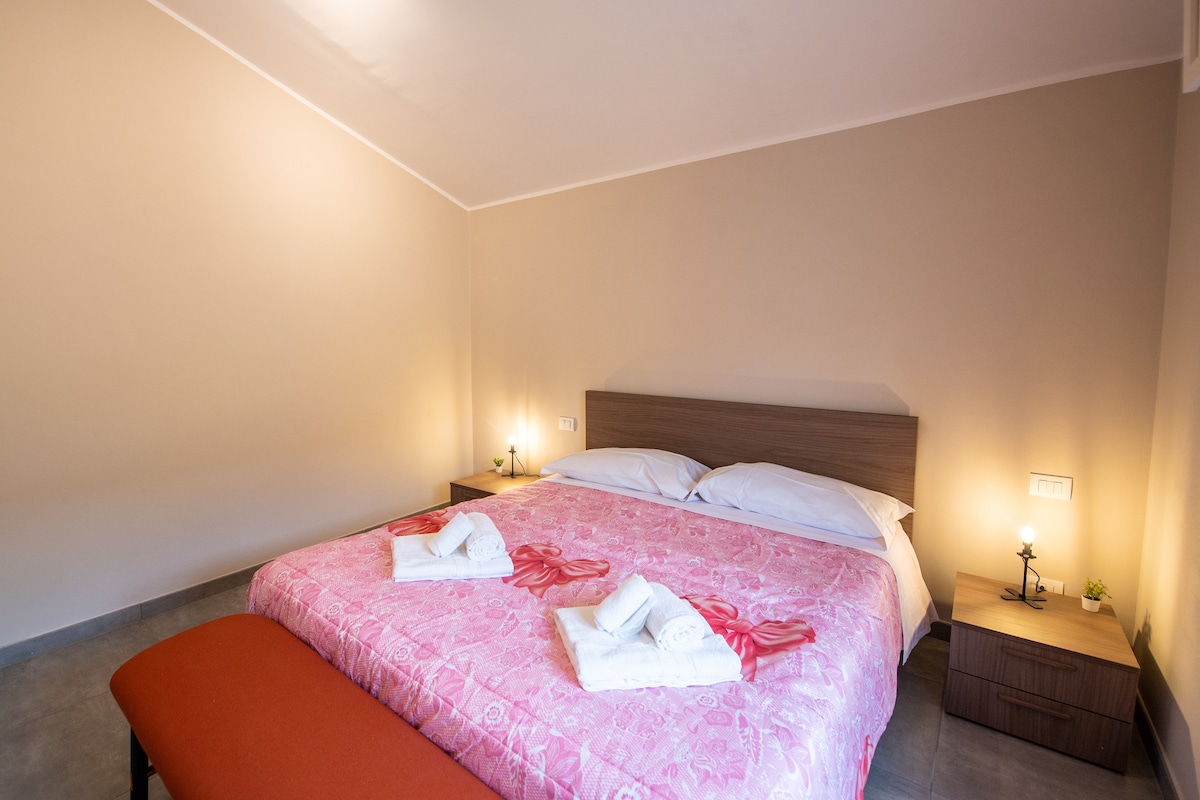 L’appartamento è situato in posizione centrale, vicino a tutti i servizi, accessibili anche a piedi. Dispone di entrata indipendente, parcheggio privato e area esterna in cui potersi rilassare compagnia. All’interno trovate l’angolo cottura con tutte le stoviglie, un soggiorno con divano letto matrimoniale, televisione e tavolo da pranzo. Ogni appartamento dispone dispone di bagno privato e una camera da letto con letto matrimoniale. La colazione è a disposizione.