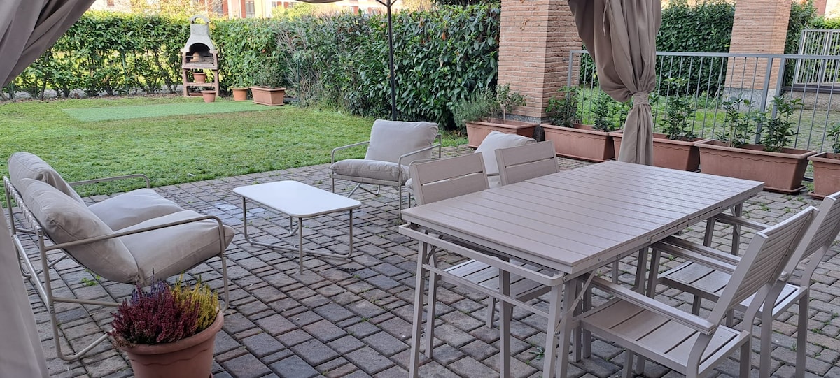 Gaggiano, a small town near Milan, easily reached by public transport or by bicycle. Ideal for couples, families and business trips. There, over the room, guests can make use of a kitchen, two bathrooms, garden with barbecue, private parking, and other facilities described within the ad.