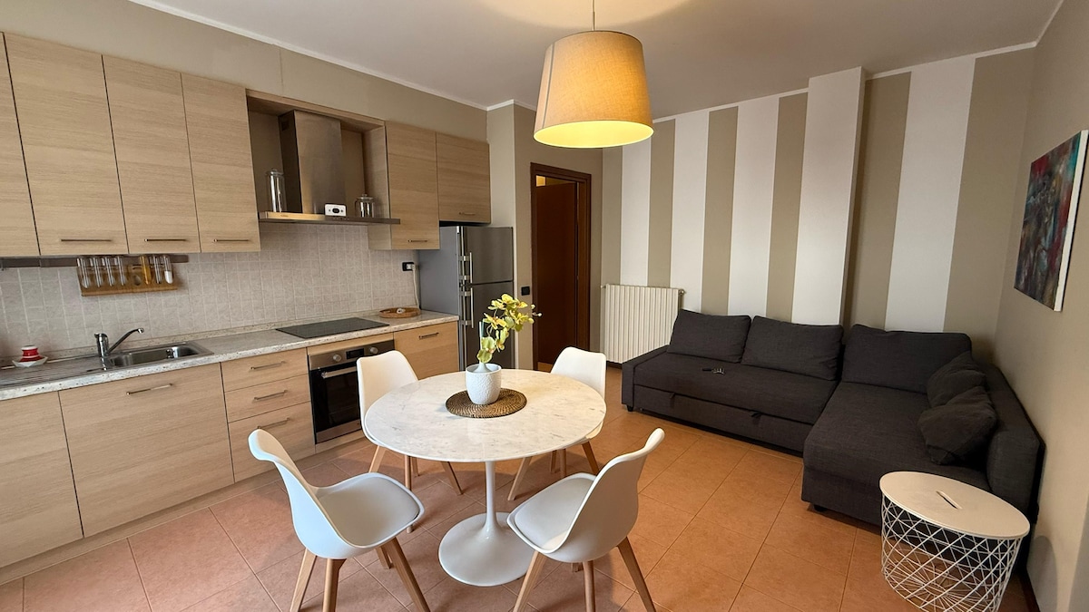 Recently renovated apartment, consisting of a living room with a sofa bed for 2, an open kitchen equipped with modern appliances, a large double bedroom with wardrobe, a windowed bathroom with shower and brand new sanitary ware. In the internal courtyard there is a parking space for exclusive use. The entire apartment is equipped with air conditioning and Fast Wifi. Perfect for couples, families or groups of friends, the apartment is equipped with a double sofa bed.