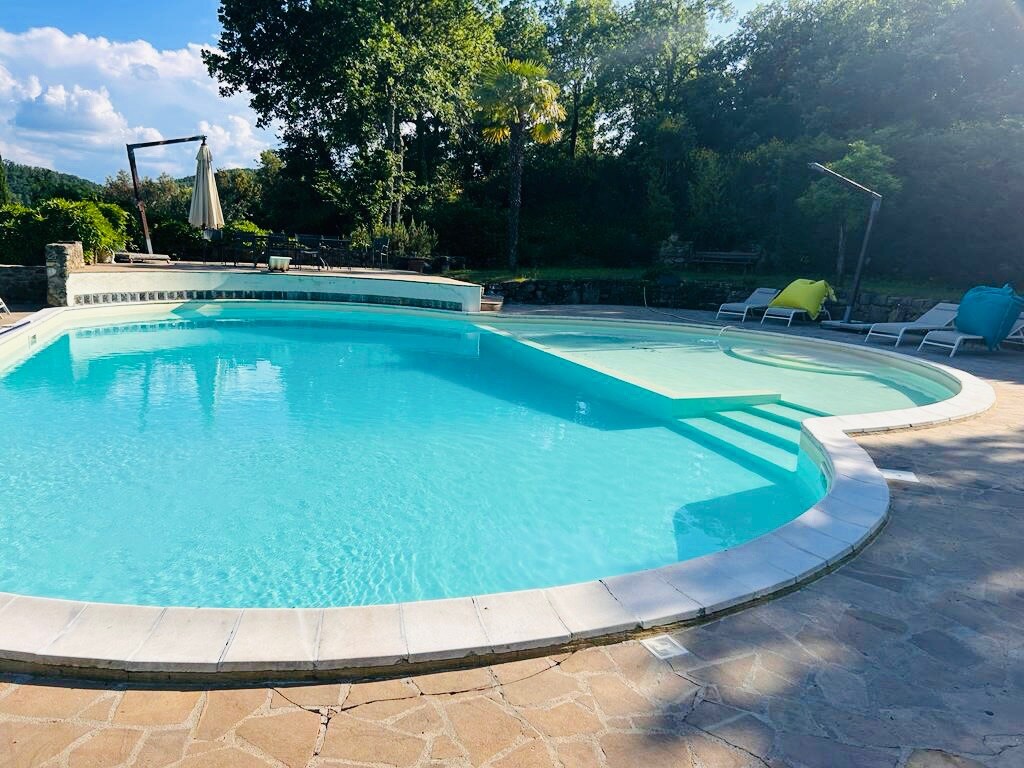 A very luxurious 10p Villa/ farm house, renovated in 2024, is a 5-minute walk from the beautiful medieval village of Paciano. The Villa is completely secluded (20,000 m2) and has an irrigated green garden and an olive grove, with an unprecedented view of Tuscany and Lake Trasimeno. With its large heated swimming pool and its many romantic terraces and outdoor kitchen, it is a unique location. Each room has its own bathroom and air conditioning. and that in the heart of Umbria and Tuscany