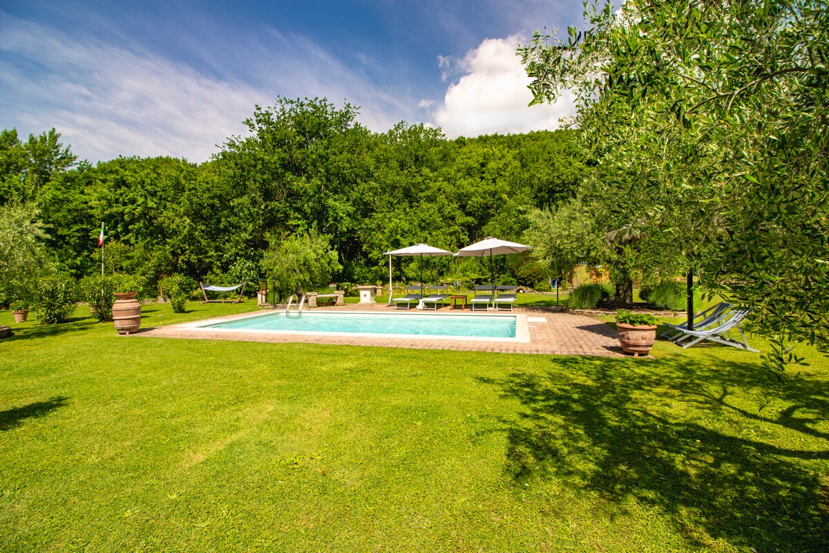 The Agriturismo Pomantello is an ancient stone country house, from the 16th Century, renovated in a natural architectural style, and picturesquely situated on a hilltop near Orvieto on the border of Umbria and Tuscany, offering an unique 360° panoramic view to the adjacent Nature Park and the medieval village Torre AlfinaThe mild climate and the beautiful surroundings make this, the right place to relax and unwind.