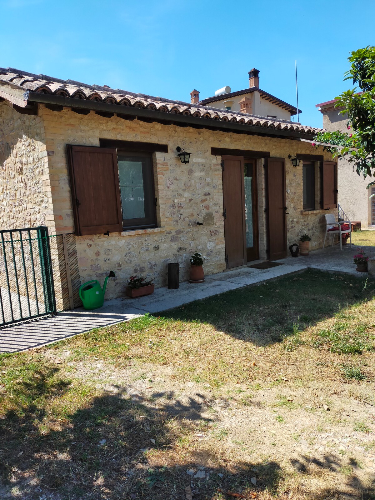 Delizioso alloggio sito in un minuscolo villaggio immerso nella campagna umbra, da cui si raggiungono facilmente stupende località come Assisi, Montefalco, Bevagna, Todi, Spoleto, Foligno. Dependance stile rustico, immersa nel verde dell'aia della casa padronale, con comodo parcheggio gratuito.