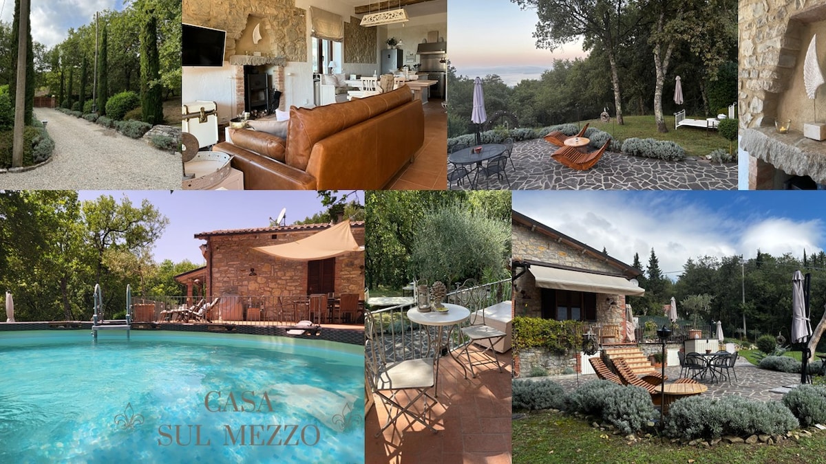 Escape to the rolling hills of Umbria in this updated farmhouse (90 m2 over 2 floors) that retains its original charm. The home features classic beamed vaulted ceilings, original stone finishes, an indoor wood-burning fireplace, private entrance and a private garden terrace. The shared pool has a large sun lounge area. If your favourite dates aren't available anymore take a look at our orange apartment. Orange: https://www.airbnb.com/rooms/plus/9429730
