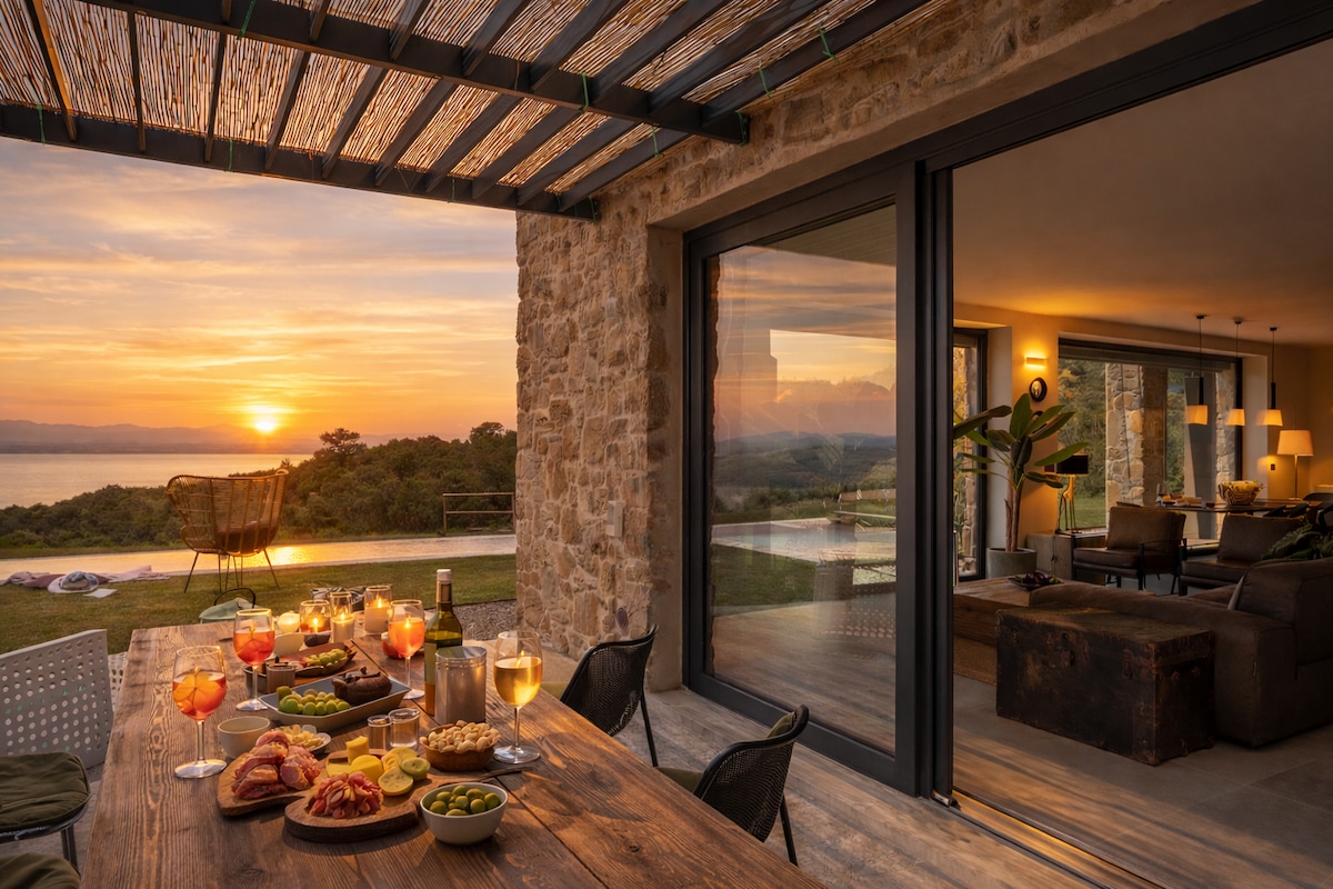 Welcome to Villa Feronia, a contemporary 3-bedroom retreat nestled in a 2-hectare olive grove near Passignano sul Trasimeno. Enjoy refined indoor-outdoor living with 3.5 bathrooms, high-speed Wi-Fi, a smart home system, an infinity saltwater heated pool, and a rooftop terrace with a fire pit. Eco-friendly and elegantly designed, it’s the ideal escape to relax, recharge, and experience authentic Italian beauty.