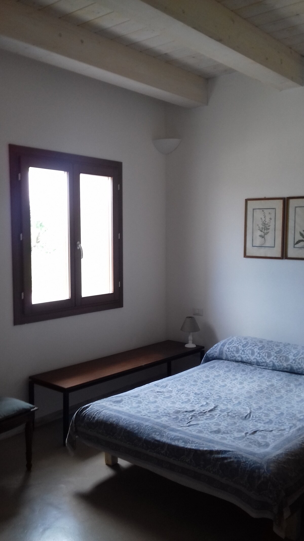Camera matrimoniale con finestra per massimo 2 ospiti con bagno completo e disimpegno in comune con altra stanza.