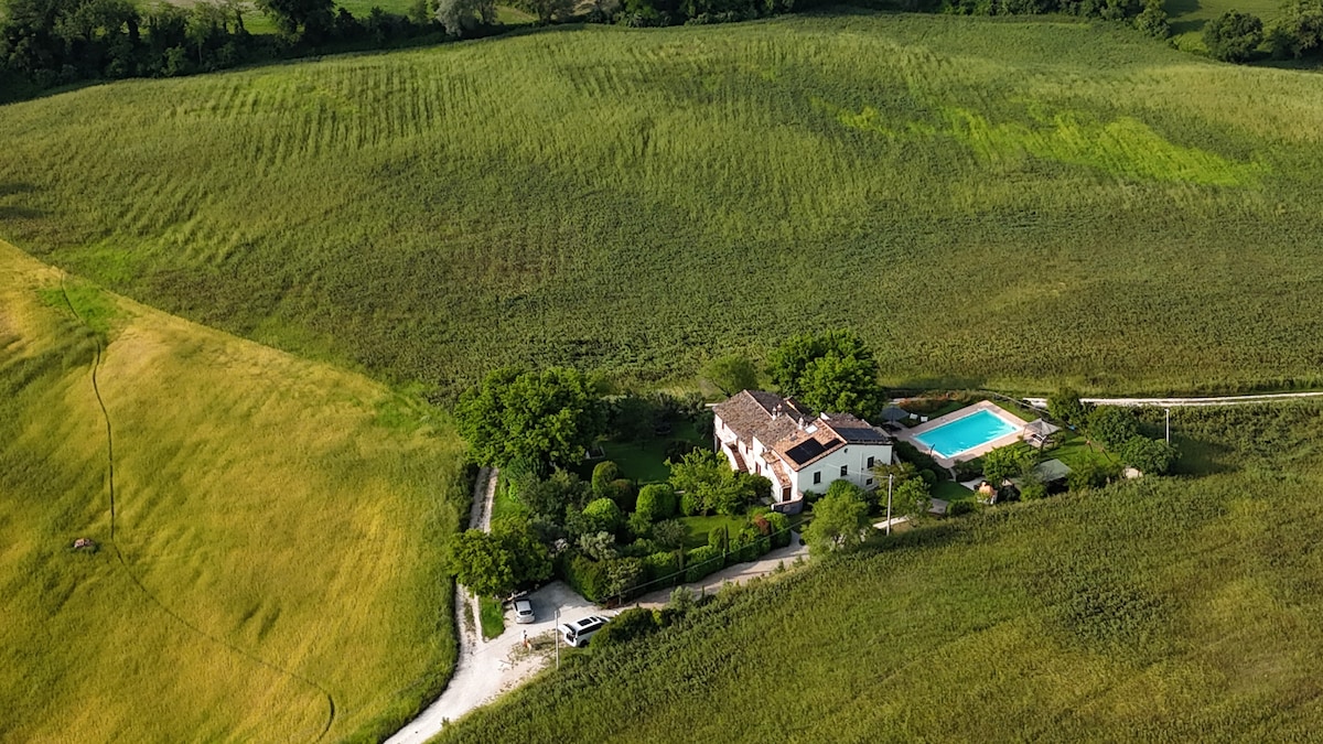 Cette villa paisible offre un séjour de détente pour toute la famille. Villa de plein pied avec piscine de 8x4m, terrasse au bord de l'eau, transats, matelas d'eau pour la piscine et pataugeoire pour enfant . La maison est bordé de champs, se situe dans un endroit très calme et reposant et possède station recharge voiture électrique . La villa est à 20 km de la belle station balnéaire de Senigallia. Un peu plus loin, vous trouverez le Mont Conero avec ses belles falaises et sa nature sauvage .