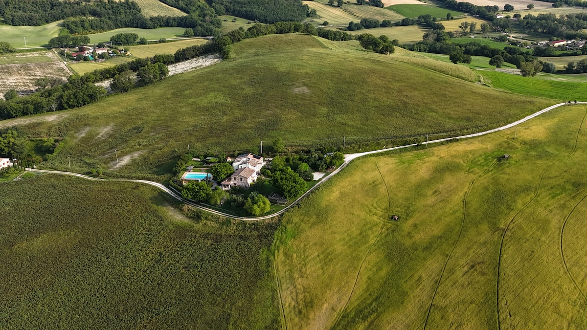 Het appartement is onderdeel van een mooi gerestaureerd huis met slechts 4 appartementen, dat zich bevindt in het hart van de ongerepte Le Marche en zeer rustig gelegen is in een glooiend landschap en omgeven door landerijen met adembenemende vergezichten . Het ligt centraal tussen Adriatische Zee en Appenijnen.