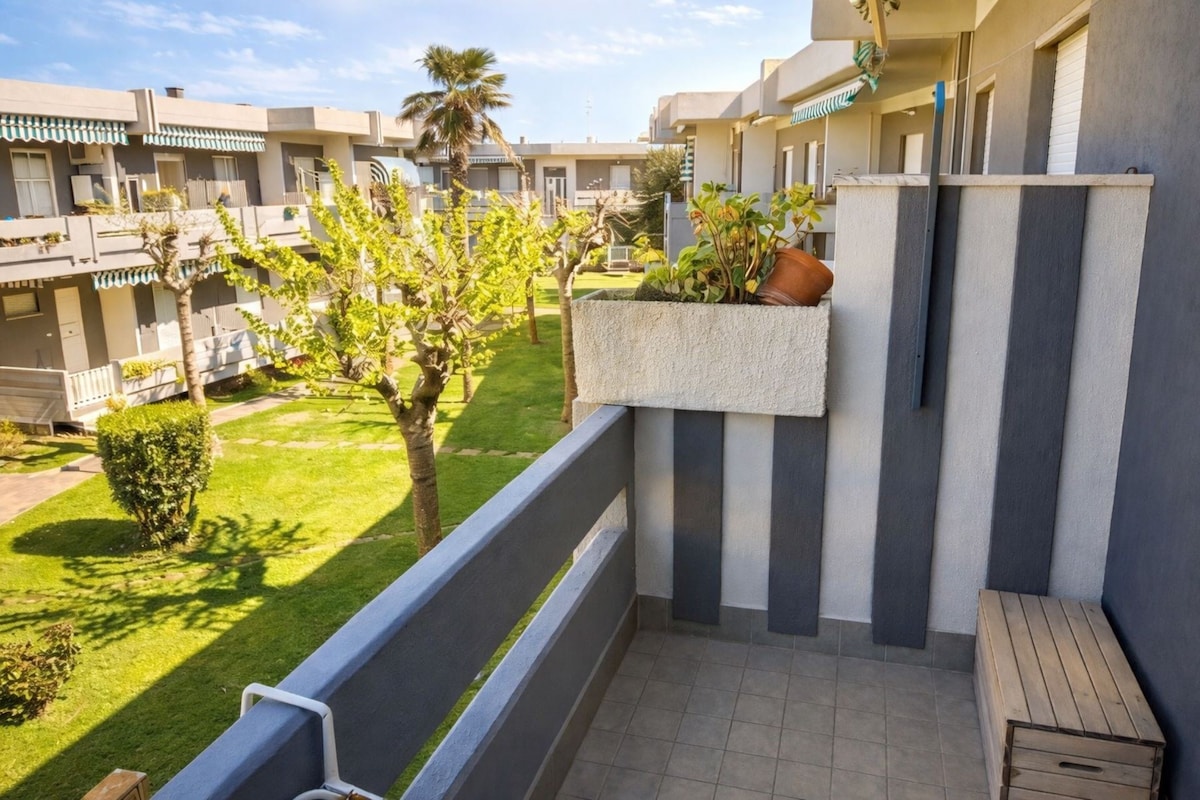 The "Giardino del Mare" apartment is a modernly designed three-room apartment located on the third floor (with elevator) in a lush complex with a fenced communal pool, just a 5-minute walk from the sea. Far from the railway station, its strategic location allows for easy access to the beach, evening stroll