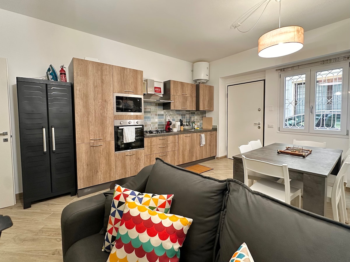 L’appartamento è situato in posizione centrale, vicino a tutti i servizi, accessibili anche a piedi. Dispone di entrata indipendente, parcheggio privato e area esterna in cui potersi rilassare compagnia. All’interno trovate l’angolo cottura con tutte le stoviglie, un soggiorno con divano letto matrimoniale, televisione e tavolo da pranzo. Ogni appartamento dispone dispone di bagno privato e una camera da letto con letto matrimoniale. La colazione è a disposizione.