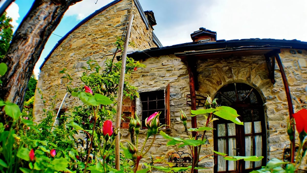 IT IS A BEAUTIFUL OLD STONE HOUSE THAT IS COOL IN THE SUMMER. WE RENT A PART WITH A INDEPENDENT ENTRANCE, THREE BEDROOMS, THREE BATHROOMS, DINING ROOM WITH KITCHEN AND TV AND WI-FI AREA WITH SOFA. GARDEN WITH DECKCHAIRS, COVERED DINING AREA, BARBECUE, RELAXATION AREA WITH SMALL STONE POOL (5X3 METRES, 1 HEIGHT) AND LOTS OF NATURE 10 MINUTES BY DRIVE FROM THE SHOPS VERY RELAXING, IF YOU DON'T LIKE THE SONG OF BIRDS BETTER DON'T COME HERE! I LIVE HERE WITH MY FAMILY AND OUR HORSES. NO PARTY!