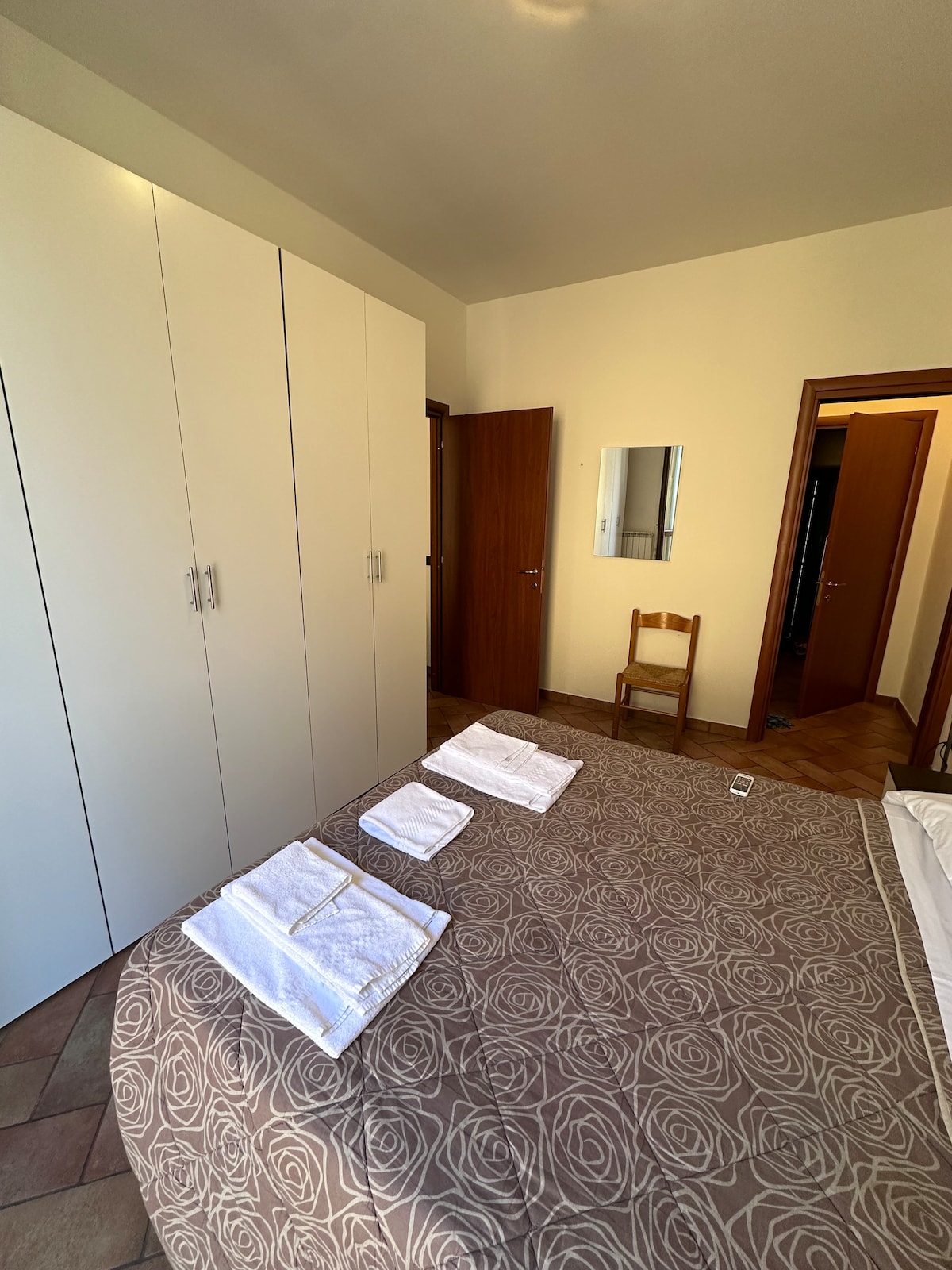 This centrally located apartment is just steps from the Palazzo dei Congressi, the Terme Zoia spa, and the Berzieri wellness center, all of which can be reached on foot in just a few minutes. The elegantly furnished home can accommodate up to six people in spacious and elegant bedrooms, two with double beds and a third with additional single beds. It is very spacious and bright, with a warm and welcoming kitchen and a spacious living room available for guests. Private parking space inside.