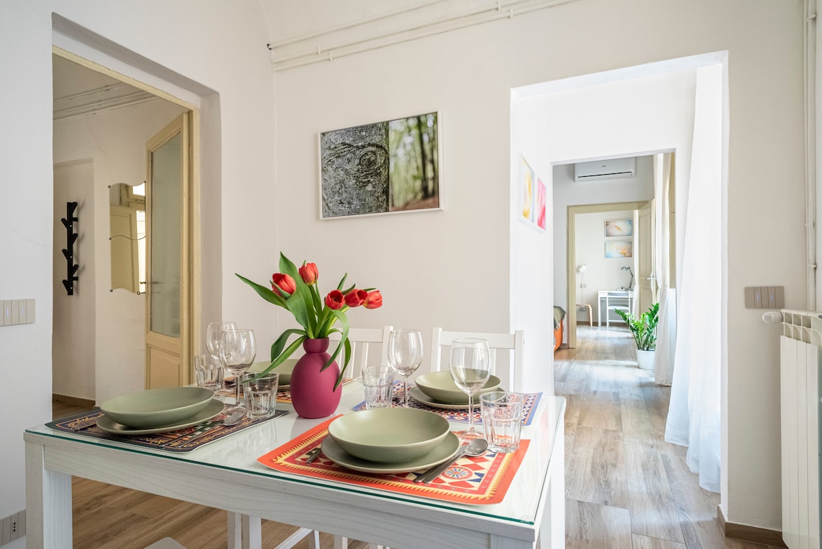 Whole apartment - In a historic building of medieval origin, on the arcades of Borgo Stretto, the most seductive street in Pisa, full of shops, clubs and tourist attractions. The beauties of the city are all immediately reachable on foot. Renovated and furnished with care, it comfortably accommodates two adults. In the apartment there are the remains of ancient city walls and an alcove with a vaulted carriage roof that rests on Ionic style columns.