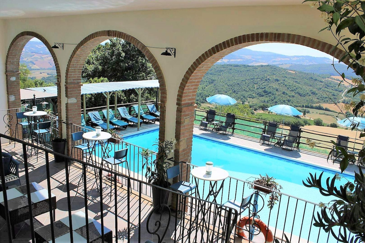 Poggio al Casone è un elegante agriturismo all'interno di una azienda vinicola in Toscana. A mezz'ora di auto da Pisa e dal mare, un'ora da Firenze. Vogliamo offrire un alto standard e comfort con appartamenti spaziosi, ben attrezzati, dotati di aria condizionata e wifi. A disposizione in comune con gli altri ospiti : piscina, jacuzzi, sala relax, bbq, bicilette, ricarica Tesla. Rilassati e ricaricati in quest'oasi di quiete ed eleganza. L'appartamento Piazzetta è ideale per una fuga romantica